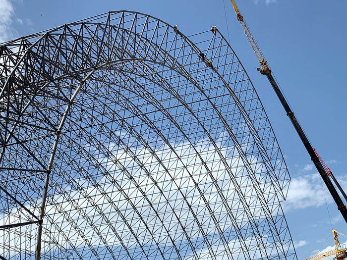 (2)网架加工前应对现场尺寸进行复测,确认无误后方可进行加工、安装;网架制作、运输、安装应遵守《空间网格结构技术规程》JGJ7-2010、《钢网架果洛螺栓球节点》JG/T 10-2009、《钢网架果洛螺栓球节点用高强度螺栓》 GB/T 16939-2016、《果洛钢结构果洛工程果洛施工规范》 GB50755-2012、《果洛钢结构果洛工程果洛施工质量验收标准》 GB50205-2020。